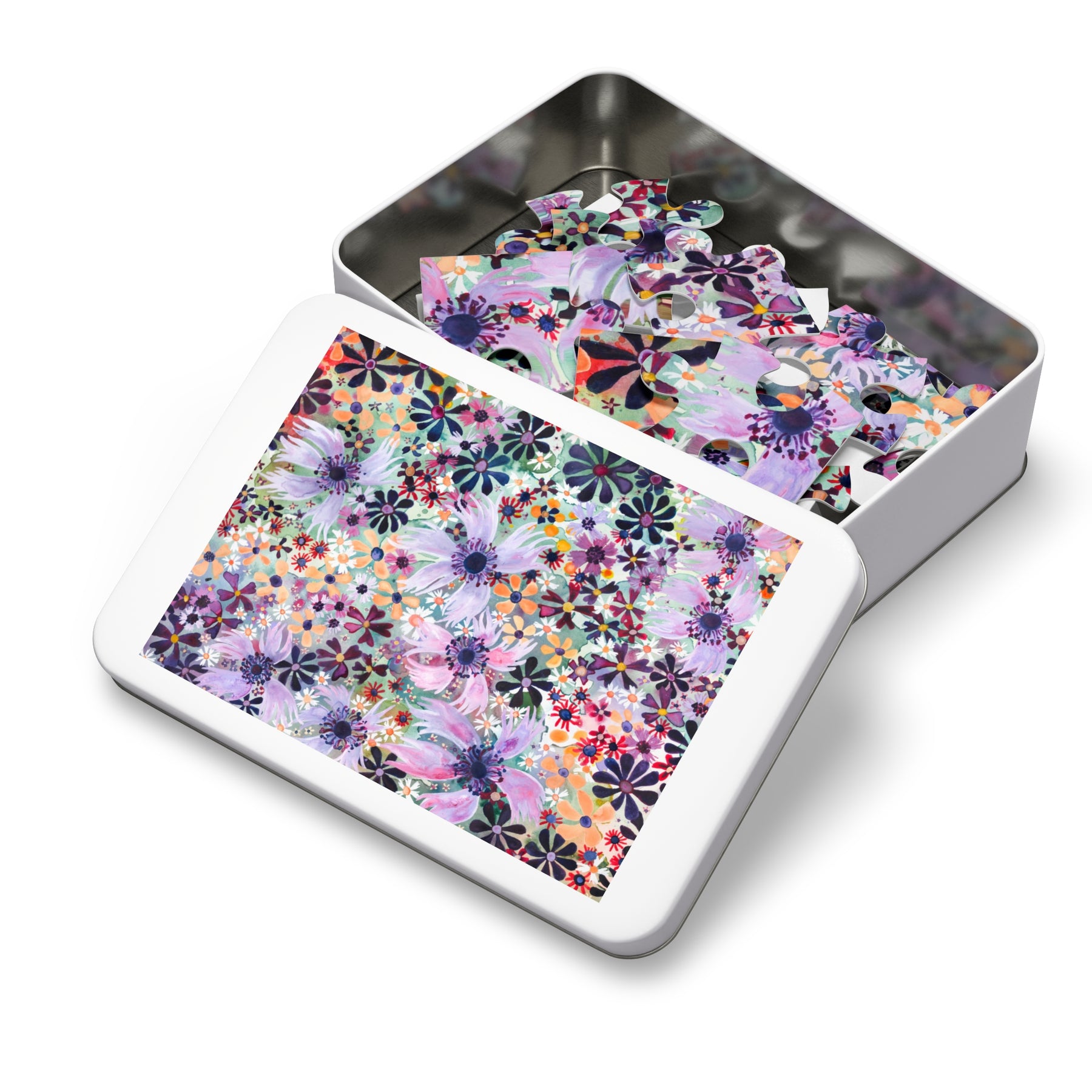 Packaged in a white metal, gift-ready, tin with the finished image on the lid